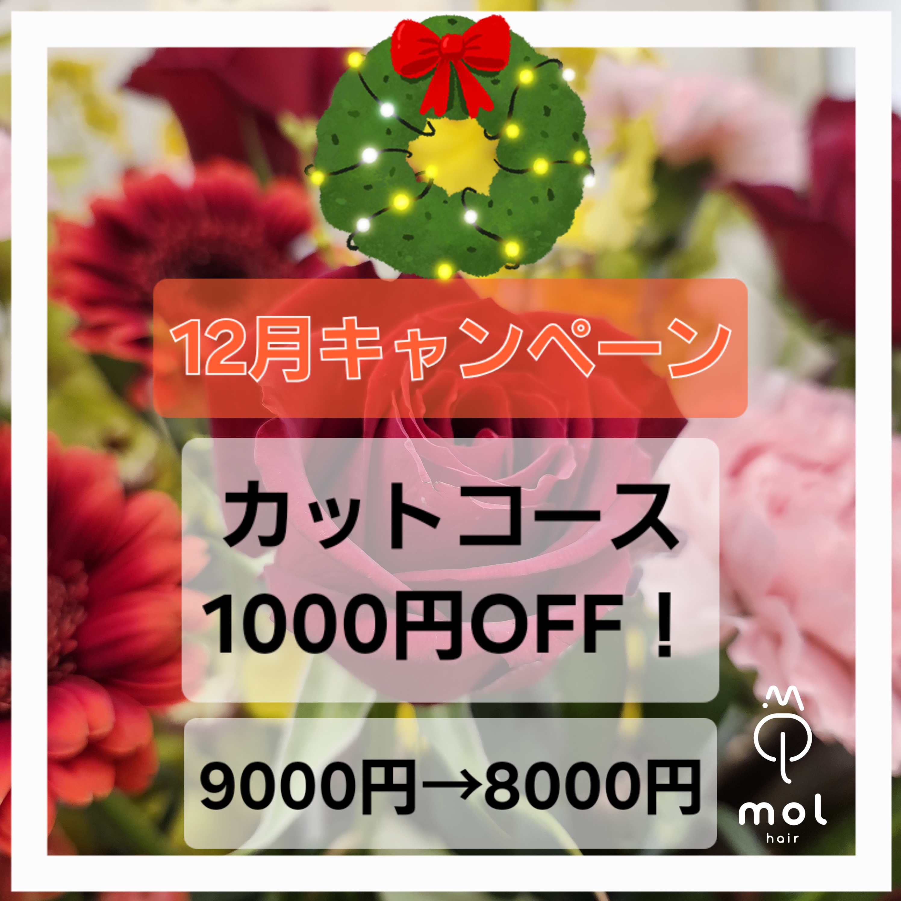 カットコースが1,000円引きの特価キャンペーンを12/1〜12/31まで実施します🎉